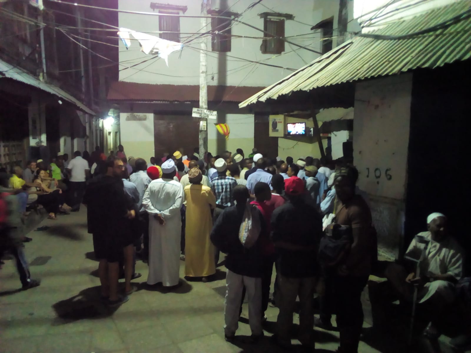abends dann chillen im hyatt park inkl sonnenuntergang (bild 6), assen zanzibar pizza und scharwama (bild 7, UNVERGLEICHLICH !) und nicht zuletzt das wm-finale…………….. ein mann, ein fernseher, eine kleine gasse, 50 leute und zwei deutsche mit kokosnuss frisch aufgemessert. sie waren leider fuer die falsche mannschaft, aber grandioseste stimmung ! (bild 7)