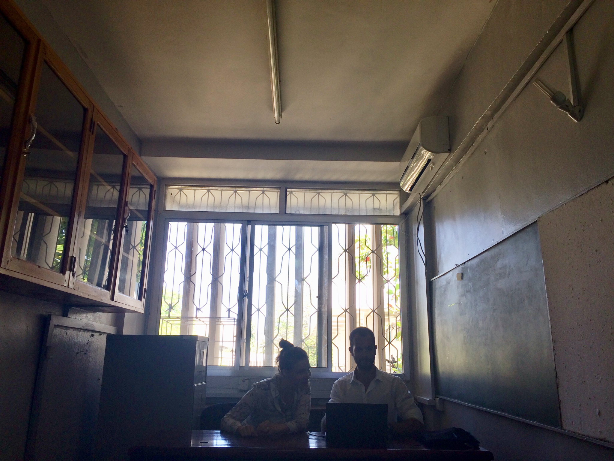 heute war dann doch der erste arbeitstag unseres praktikums.. vorstellung in der uni DSM, haendeschuetteln und – achtung! – buero beziehen! ein langer tisch, zwei stuehle und eine lan-verbindung: 30kb/s.. karibu tanzania! đ